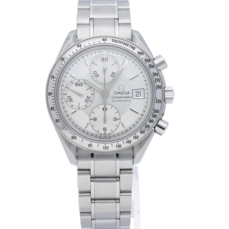 オメガの代表的な人気シリーズ「スピードマスター・デイト」。クロノグラフ・デイト表示機能付きと便利で実用性のある1本です。