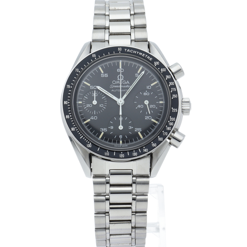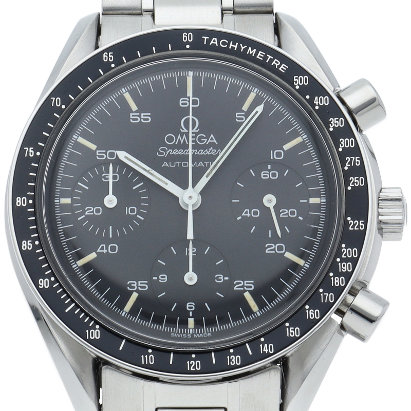 オメガを代表する人気シリーズ「スピードマスター」。プラ風防を使用したレトロな雰囲気かつシンプルにまとまったデザインがスタイルを選ばずにご使用いただけます。