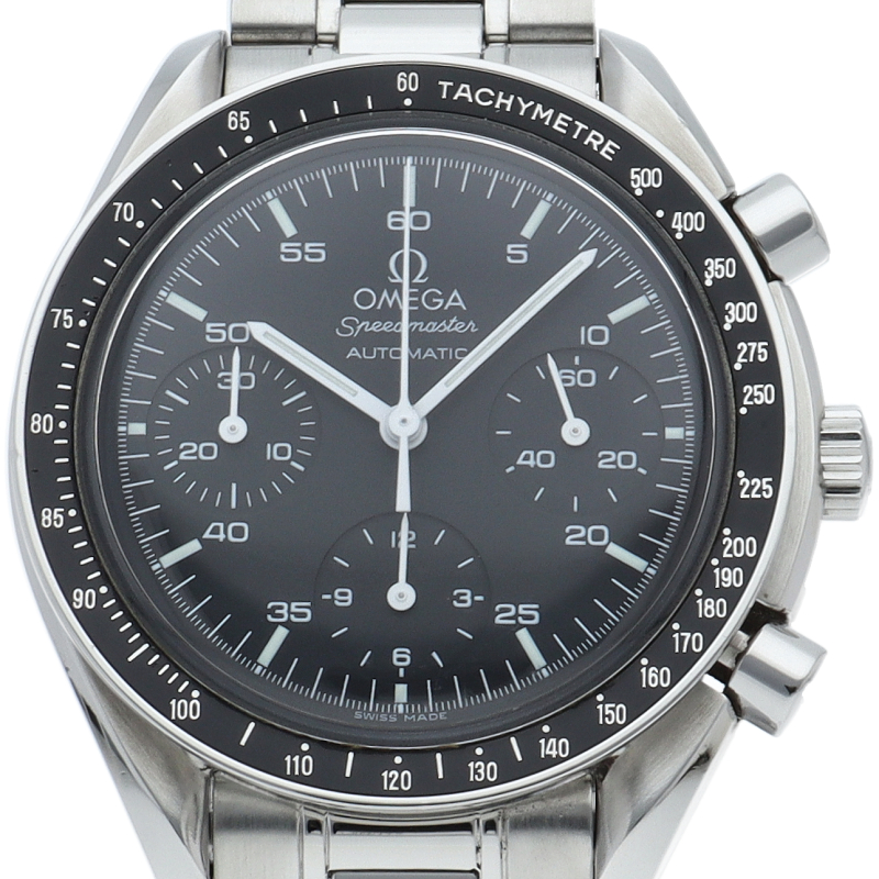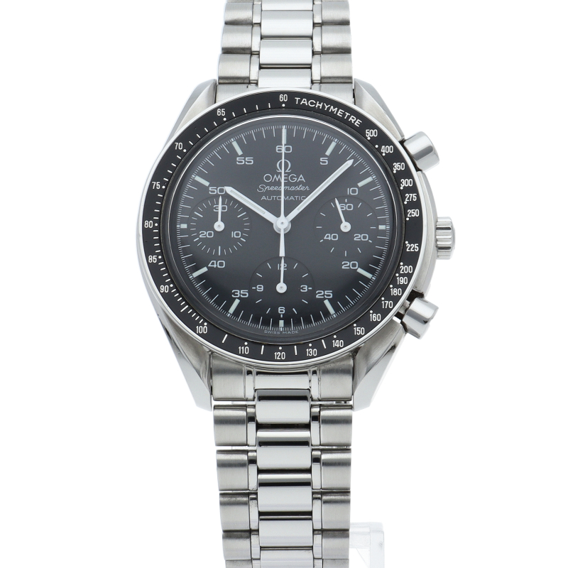 オメガを代表する人気シリーズ「スピードマスター」。プラ風防を使用したレトロな雰囲気かつシンプルにまとまったデザインがスタイルを選ばずにご使用いただけます。