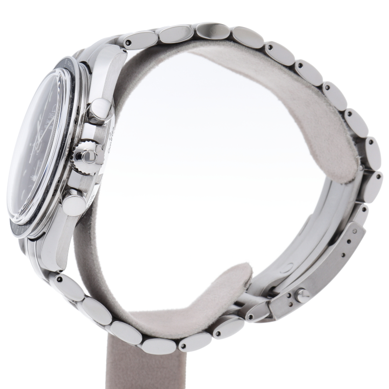オメガを代表する人気モデルでムーンウォッチとしても有名な1本。シースルーバックから覗ける手巻ムーブメントが特徴的な1本。サファイアガラスに仕様が変更されました。クロノグラフ搭載。Cal.1863。