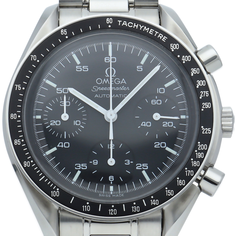 オメガを代表する人気シリーズ「スピードマスター」。プラ風防を使用したレトロな雰囲気かつシンプルにまとまったデザインがスタイルを選ばずにご使用いただけます。