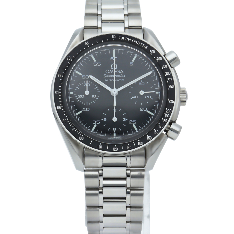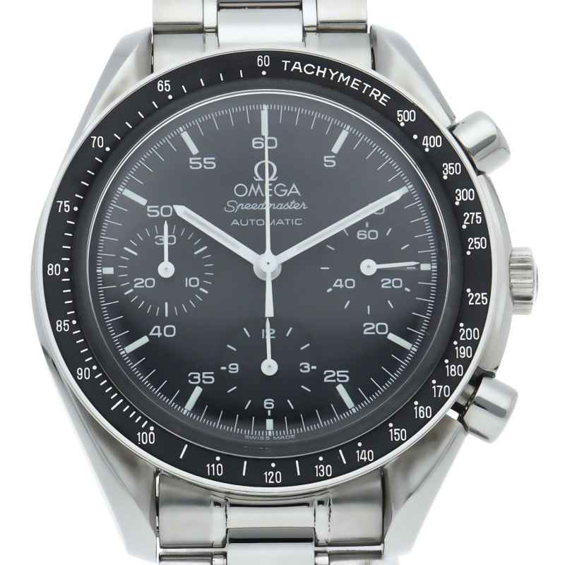 オメガを代表する人気シリーズ「スピードマスター」。プラ風防を使用したレトロな雰囲気かつシンプルにまとまったデザインがスタイルを選ばずにご使用いただけます。