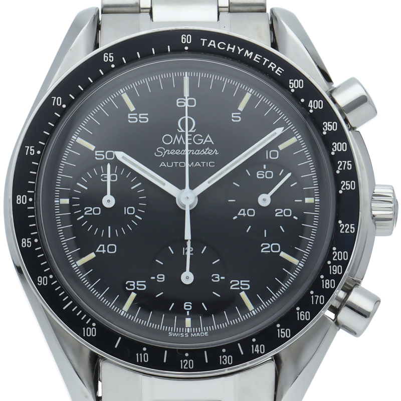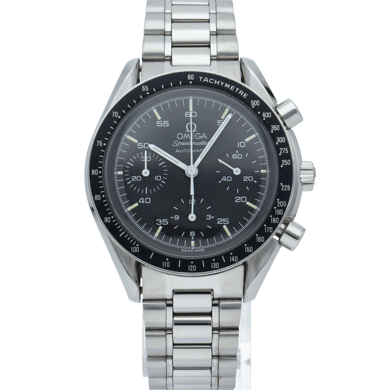 オメガを代表する人気シリーズ「スピードマスター」。プラ風防を使用したレトロな雰囲気かつシンプルにまとまったデザインがスタイルを選ばずにご使用いただけます。