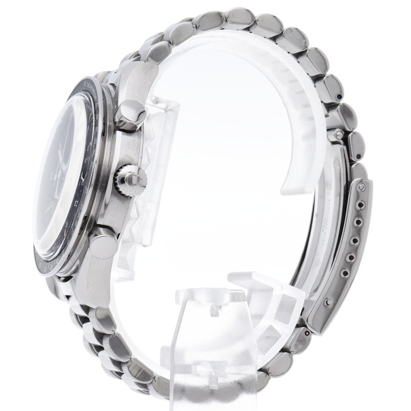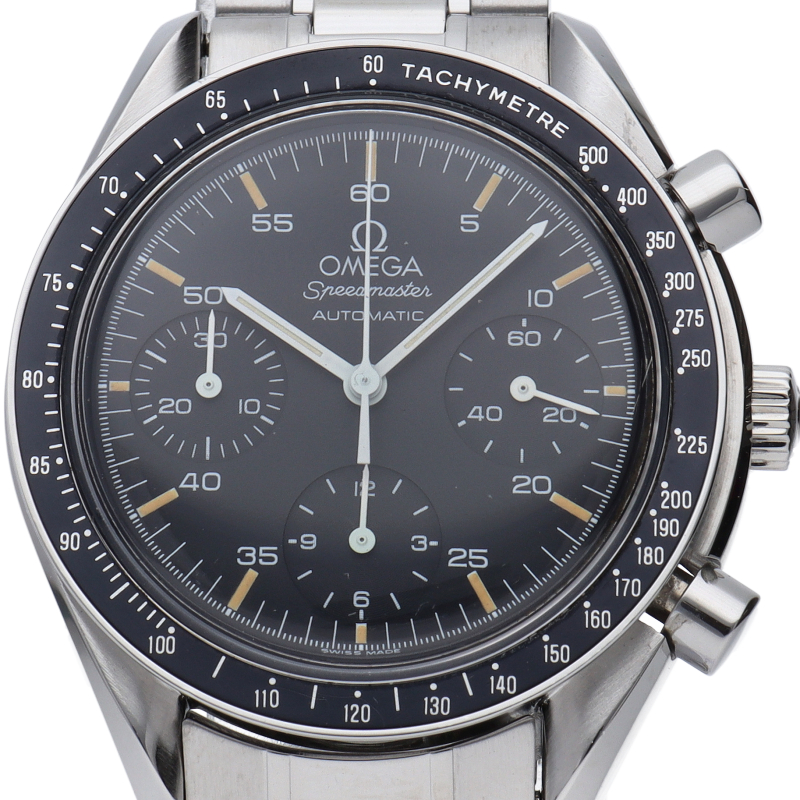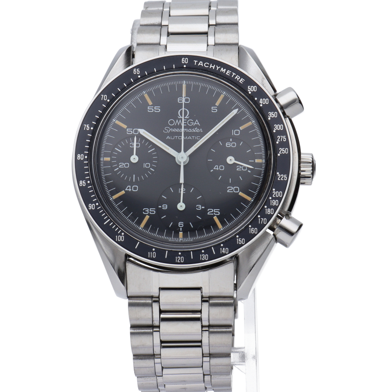 オメガを代表する人気シリーズ「スピードマスター」。プラ風防を使用したレトロな雰囲気かつシンプルにまとまったデザインがスタイルを選ばずにご使用いただけます。