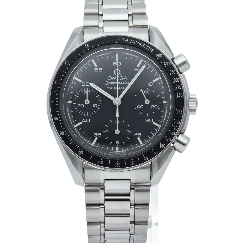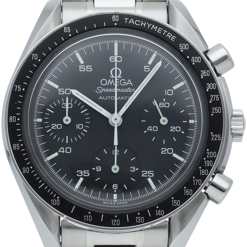 オメガを代表する人気シリーズ「スピードマスター」。プラ風防を使用したレトロな雰囲気かつシンプルにまとまったデザインがスタイルを選ばずにご使用いただけます。