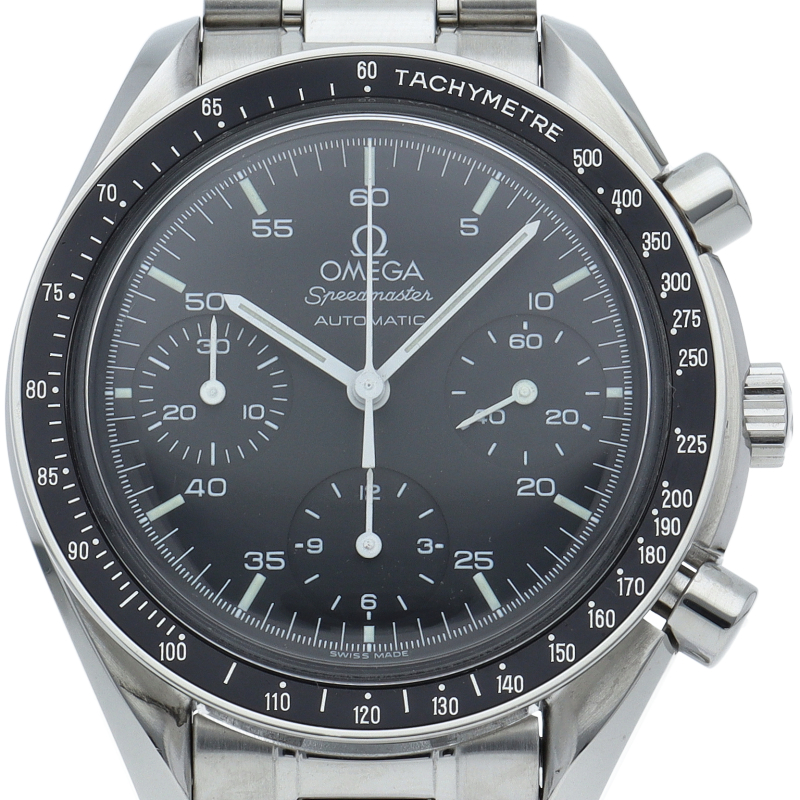 オメガを代表する人気シリーズ「スピードマスター」。プラ風防を使用したレトロな雰囲気かつシンプルにまとまったデザインがスタイルを選ばずにご使用いただけます。