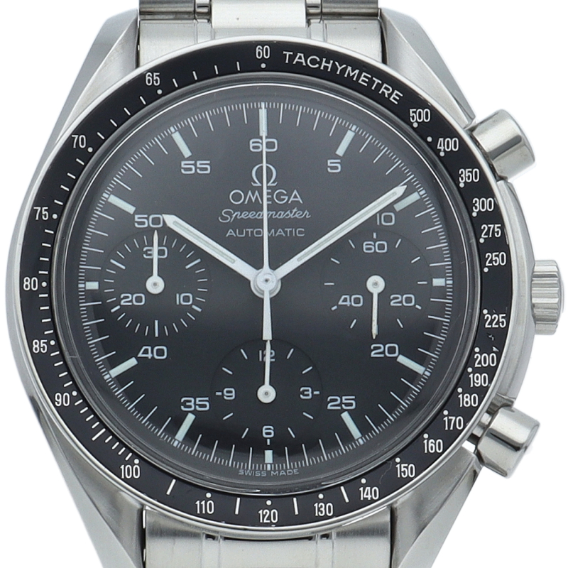 オメガを代表する人気シリーズ「スピードマスター」。プラ風防を使用したレトロな雰囲気かつシンプルにまとまったデザインがスタイルを選ばずにご使用いただけます。