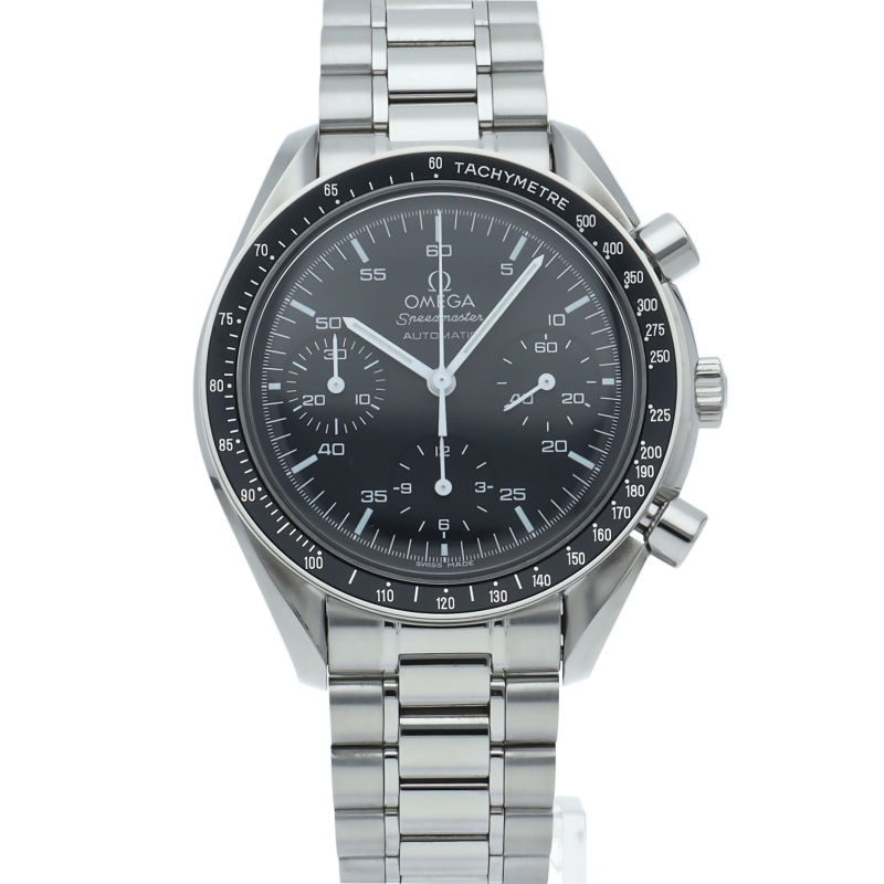 オメガを代表する人気シリーズ「スピードマスター」。プラ風防を使用したレトロな雰囲気かつシンプルにまとまったデザインがスタイルを選ばずにご使用いただけます。