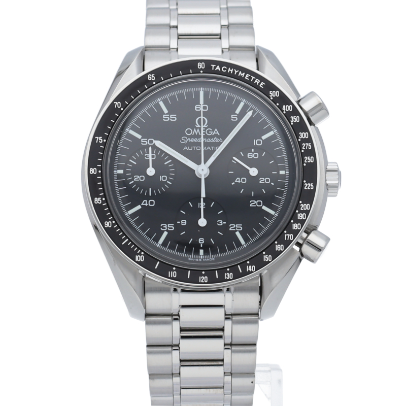 オメガを代表する人気シリーズ「スピードマスター」。プラ風防を使用したレトロな雰囲気かつシンプルにまとまったデザインがスタイルを選ばずにご使用いただけます。