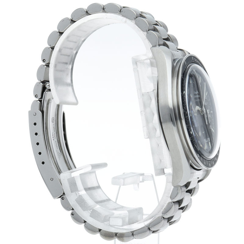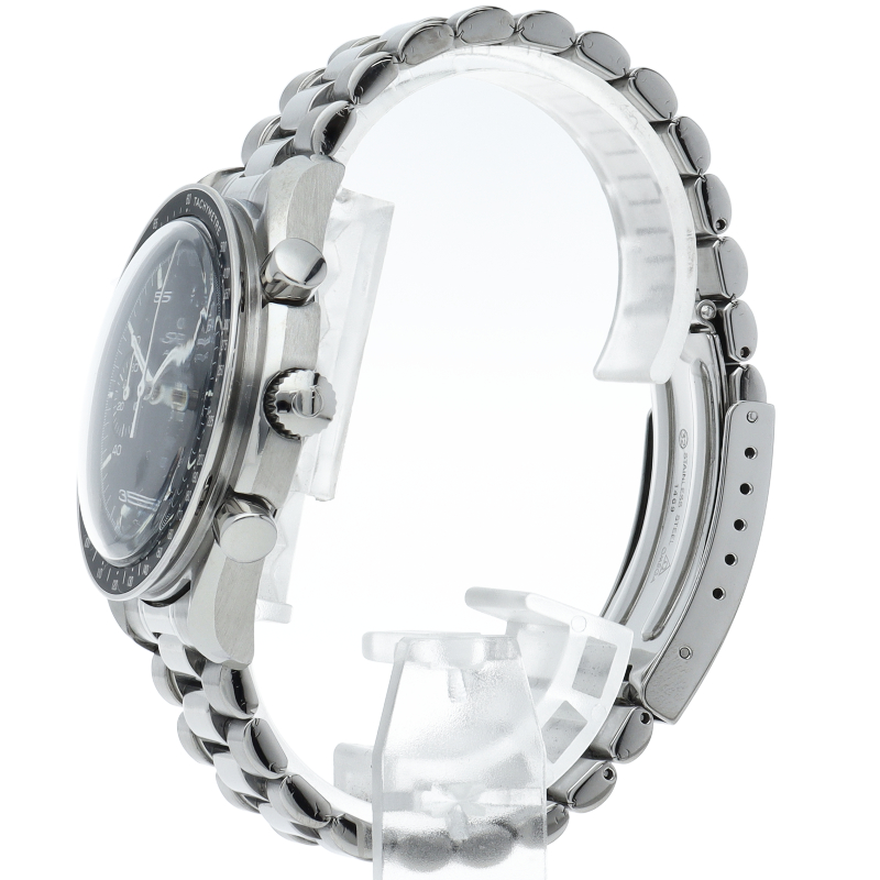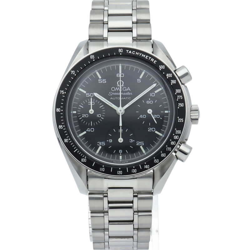 オメガを代表する人気シリーズ「スピードマスター」。プラ風防を使用したレトロな雰囲気かつシンプルにまとまったデザインがスタイルを選ばずにご使用いただけます。