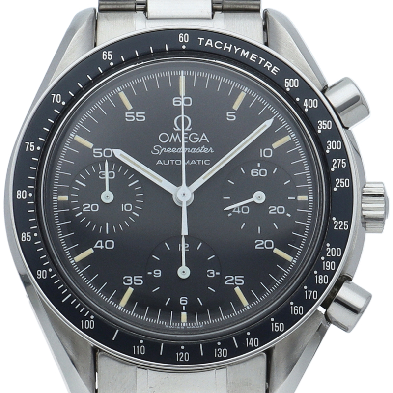 オメガを代表する人気シリーズ「スピードマスター」。プラ風防を使用したレトロな雰囲気かつシンプルにまとまったデザインがスタイルを選ばずにご使用いただけます。