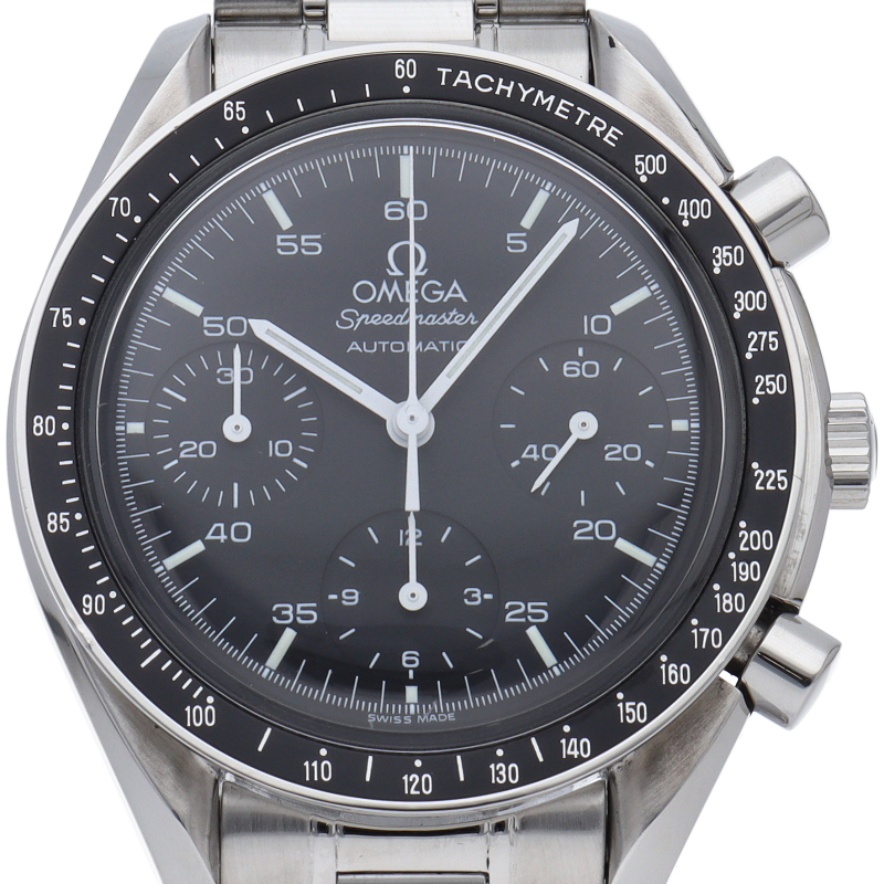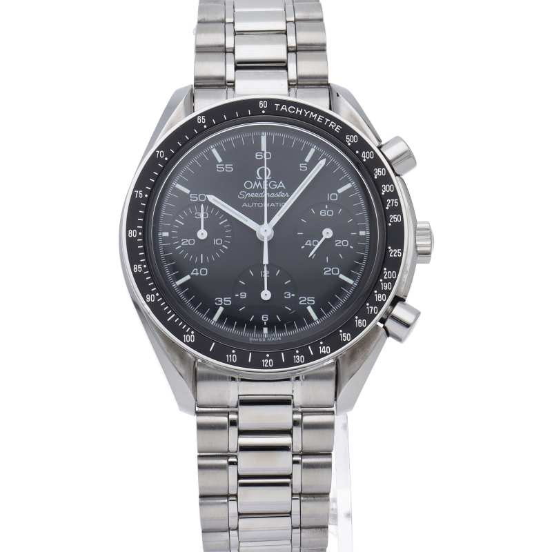 オメガを代表する人気シリーズ「スピードマスター」。プラ風防を使用したレトロな雰囲気かつシンプルにまとまったデザインがスタイルを選ばずにご使用いただけます。