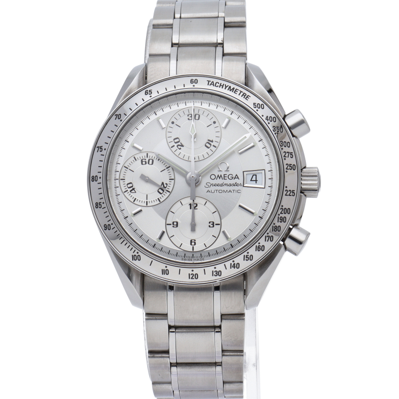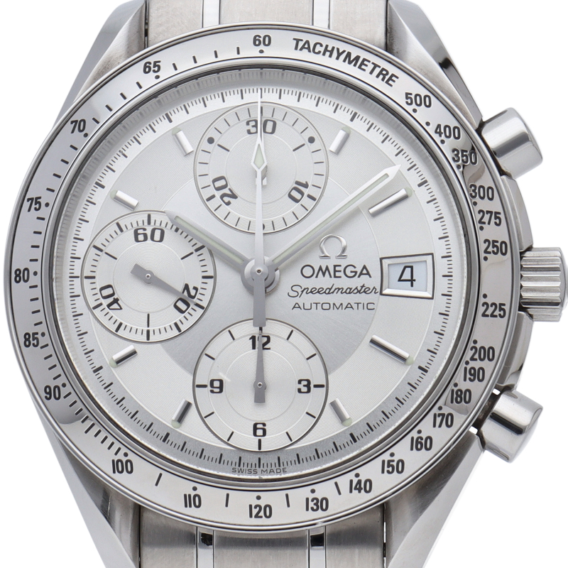 オメガの代表的な人気シリーズ「スピードマスター・デイト」。クロノグラフ・デイト表示機能付きと便利で実用性のある1本です。