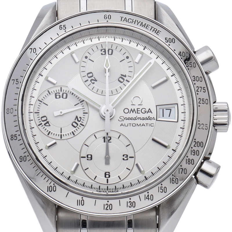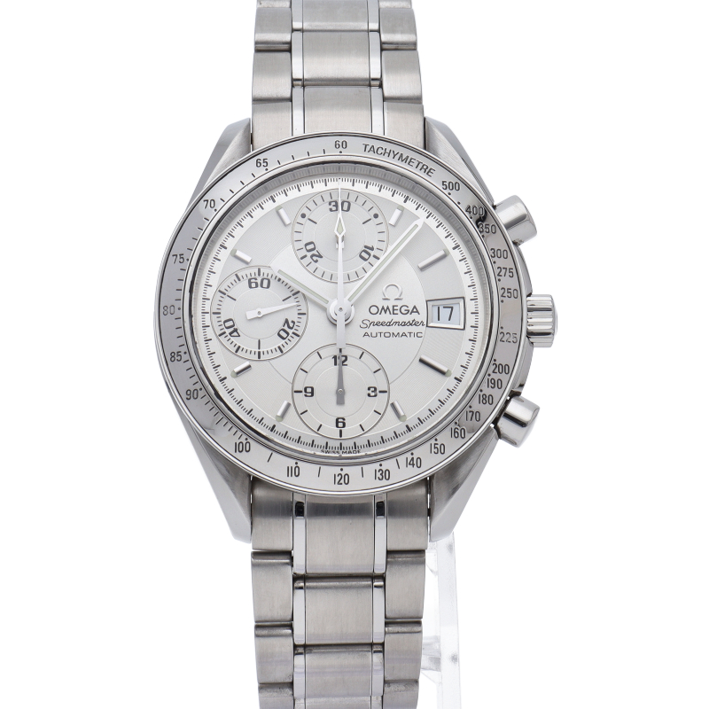 オメガの代表的な人気シリーズ「スピードマスター・デイト」。クロノグラフ・デイト表示機能付きと便利で実用性のある1本です。