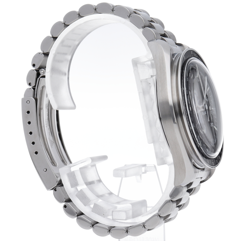 オメガを代表する人気シリーズ「スピードマスター」。プラ風防を使用したレトロな雰囲気かつシンプルにまとまったデザインがスタイルを選ばずにご使用いただけます。