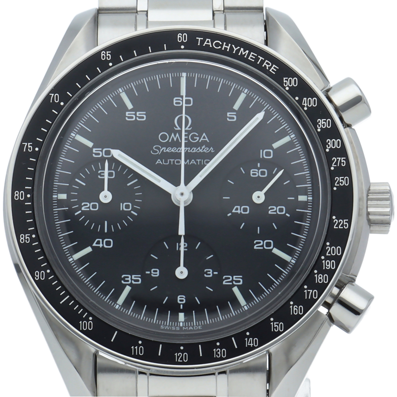 オメガを代表する人気シリーズ「スピードマスター」。プラ風防を使用したレトロな雰囲気かつシンプルにまとまったデザインがスタイルを選ばずにご使用いただけます。