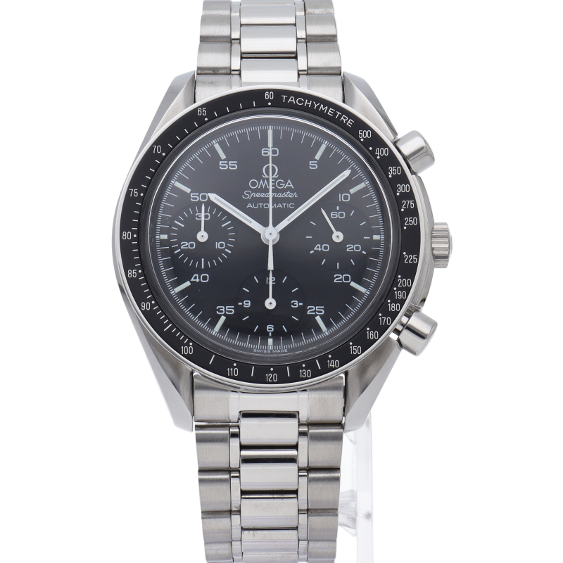 オメガを代表する人気シリーズ「スピードマスター」。プラ風防を使用したレトロな雰囲気かつシンプルにまとまったデザインがスタイルを選ばずにご使用いただけます。