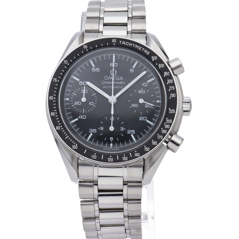 オメガを代表する人気シリーズ「スピードマスター」。プラ風防を使用したレトロな雰囲気かつシンプルにまとまったデザインがスタイルを選ばずにご使用いただけます。