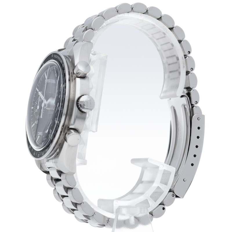 オメガを代表する人気シリーズ「スピードマスター」。プラ風防を使用したレトロな雰囲気かつシンプルにまとまったデザインがスタイルを選ばずにご使用いただけます。