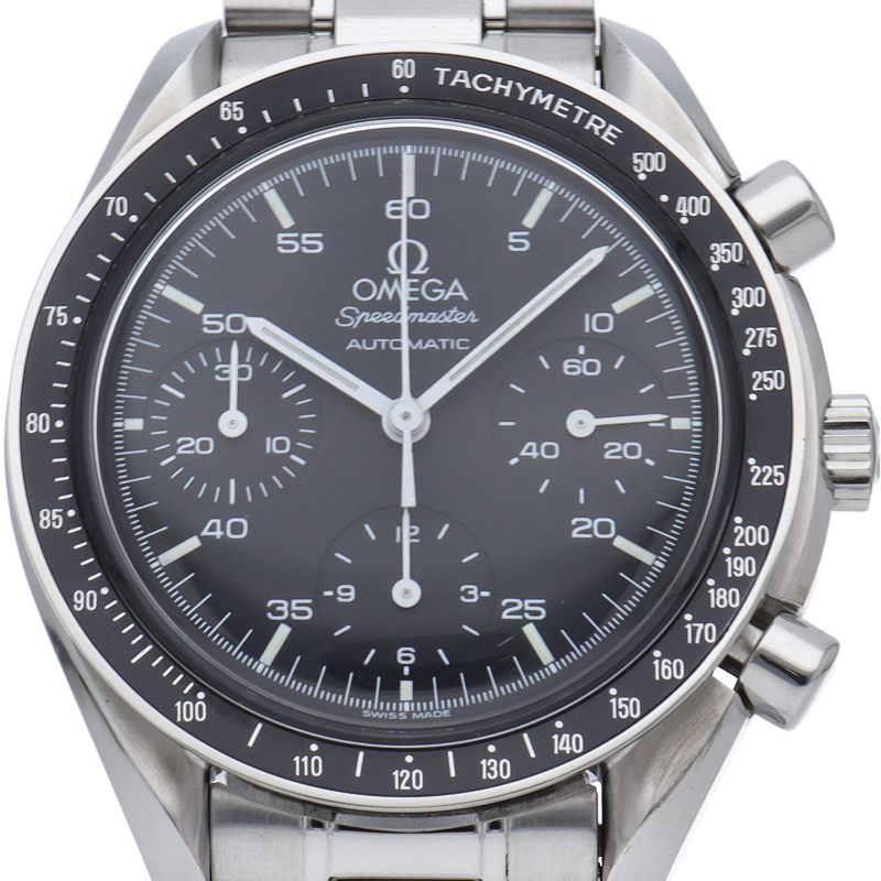オメガを代表する人気シリーズ「スピードマスター」。プラ風防を使用したレトロな雰囲気かつシンプルにまとまったデザインがスタイルを選ばずにご使用いただけます。