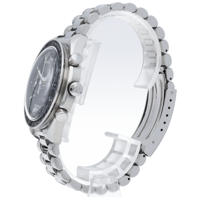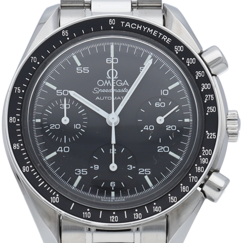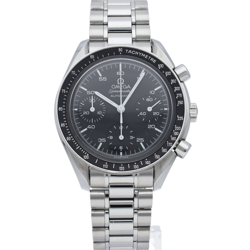 オメガを代表する人気シリーズ「スピードマスター」。プラ風防を使用したレトロな雰囲気かつシンプルにまとまったデザインがスタイルを選ばずにご使用いただけます。