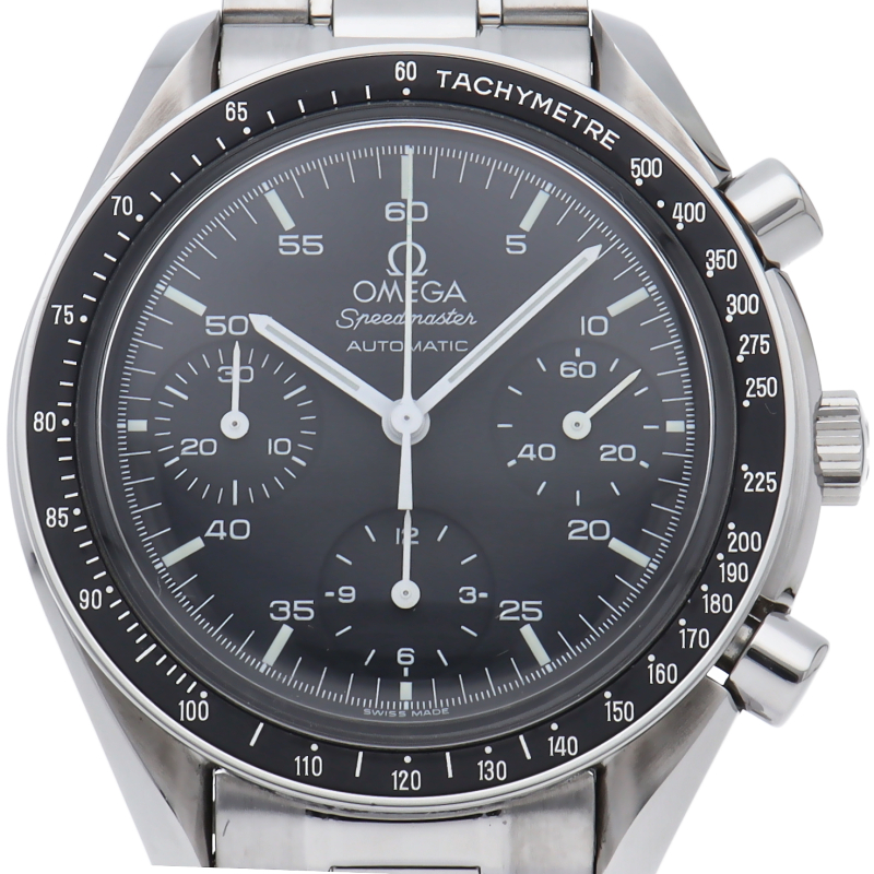 オメガを代表する人気シリーズ「スピードマスター」。プラ風防を使用したレトロな雰囲気かつシンプルにまとまったデザインがスタイルを選ばずにご使用いただけます。