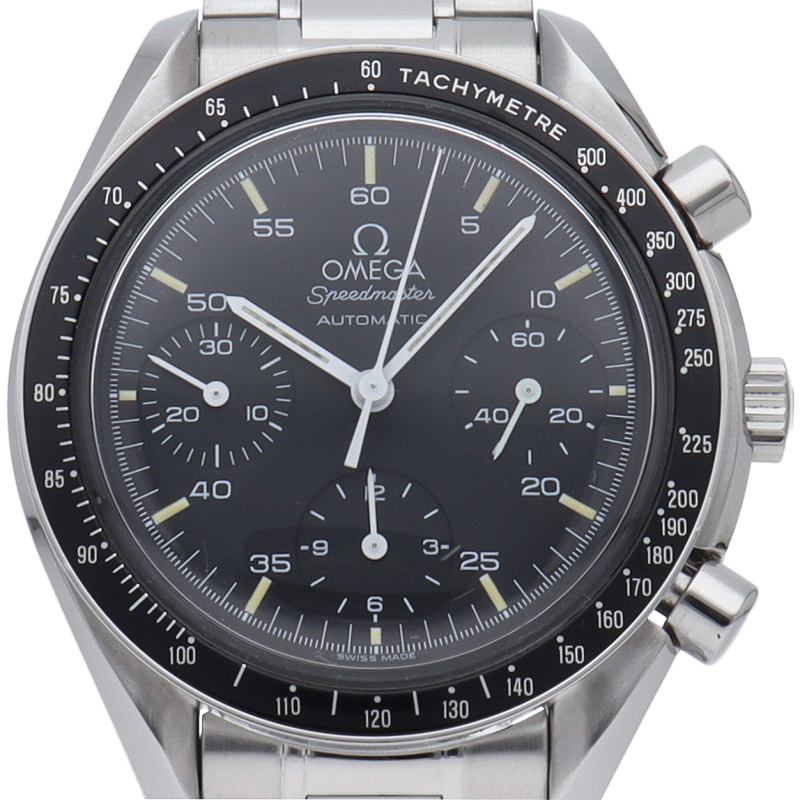 オメガを代表する人気シリーズ「スピードマスター」。プラ風防を使用したレトロな雰囲気かつシンプルにまとまったデザインがスタイルを選ばずにご使用いただけます。