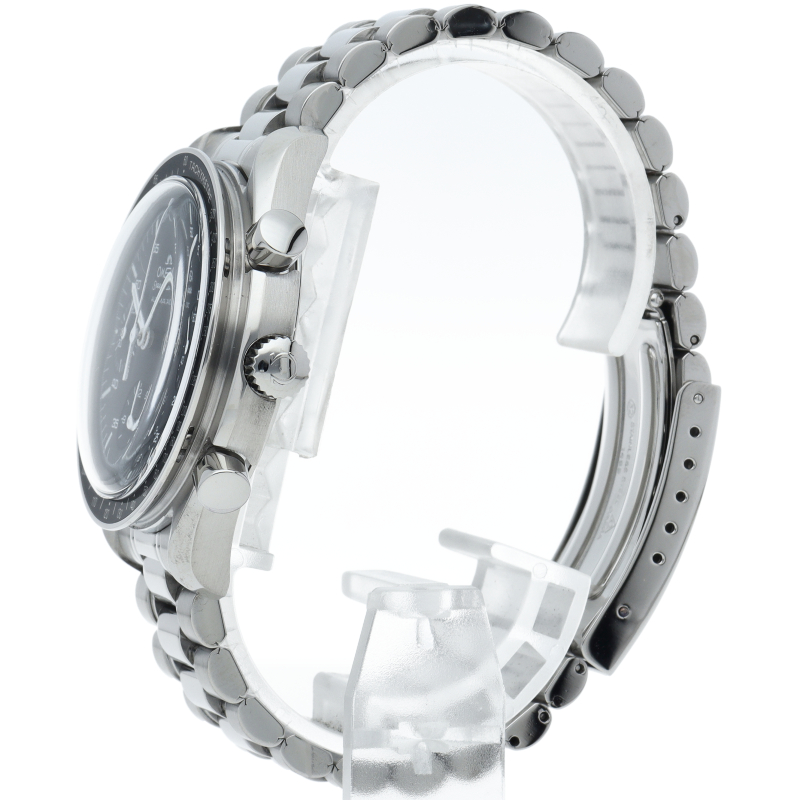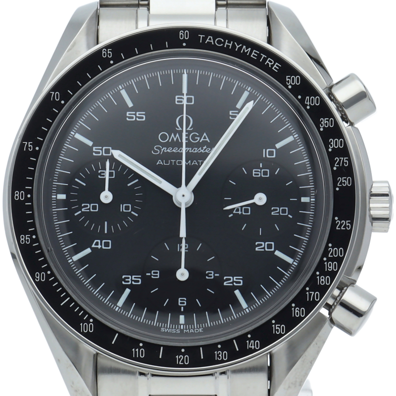 オメガを代表する人気シリーズ「スピードマスター」。プラ風防を使用したレトロな雰囲気かつシンプルにまとまったデザインがスタイルを選ばずにご使用いただけます。