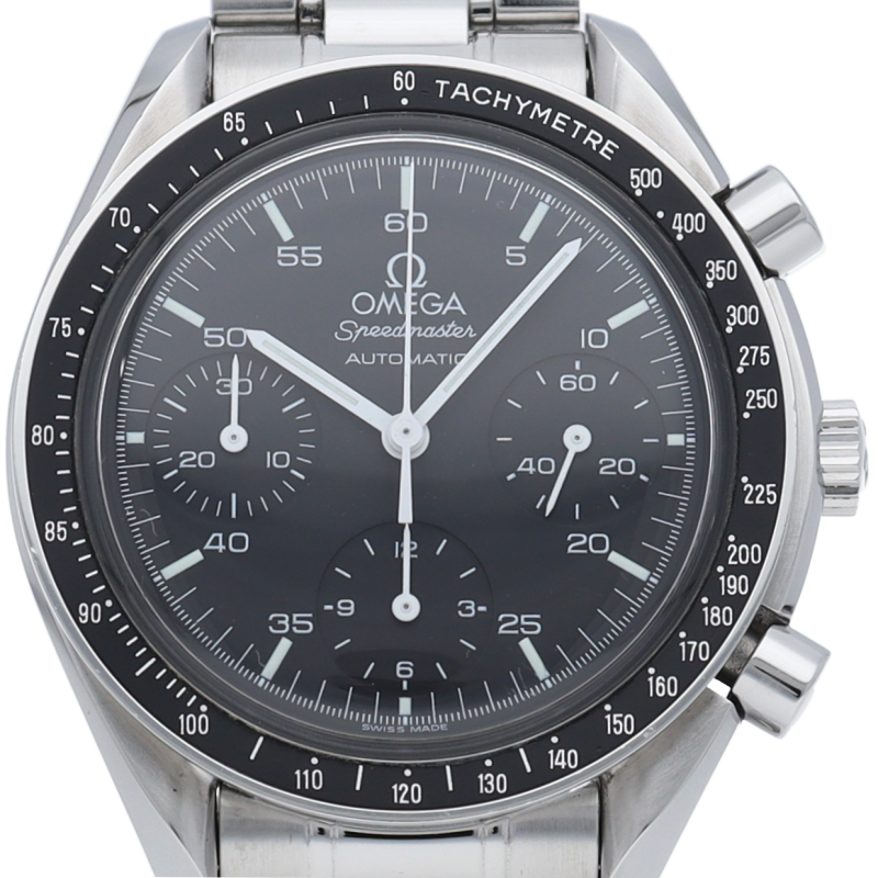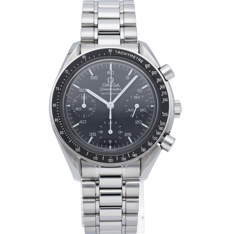 オメガを代表する人気シリーズ「スピードマスター」。プラ風防を使用したレトロな雰囲気かつシンプルにまとまったデザインがスタイルを選ばずにご使用いただけます。