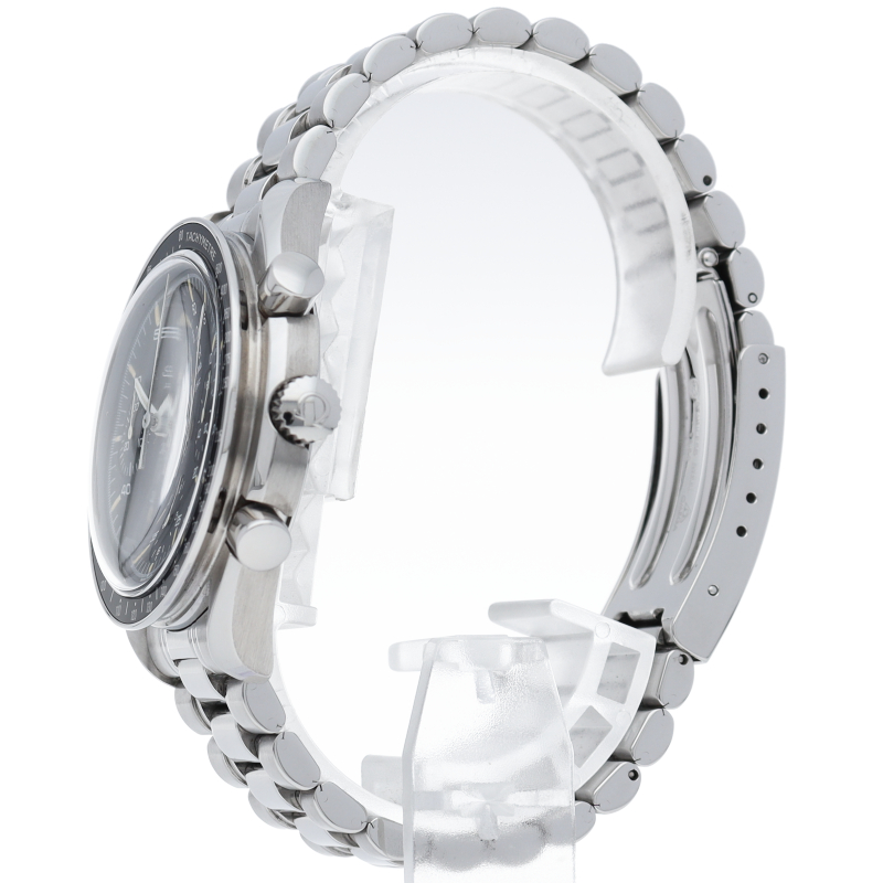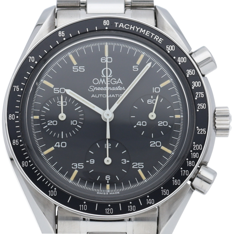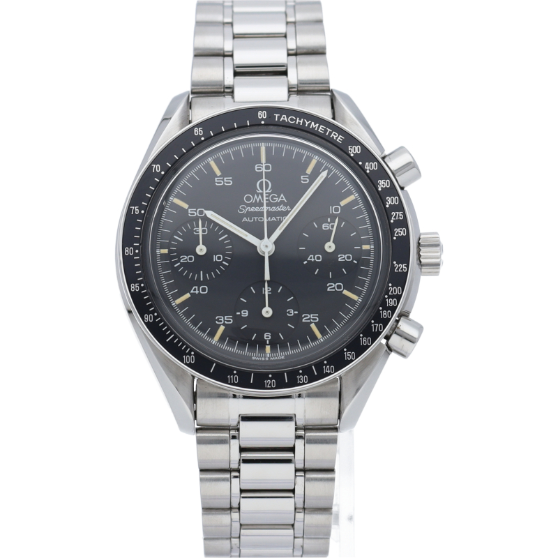 オメガを代表する人気シリーズ「スピードマスター」。プラ風防を使用したレトロな雰囲気かつシンプルにまとまったデザインがスタイルを選ばずにご使用いただけます。