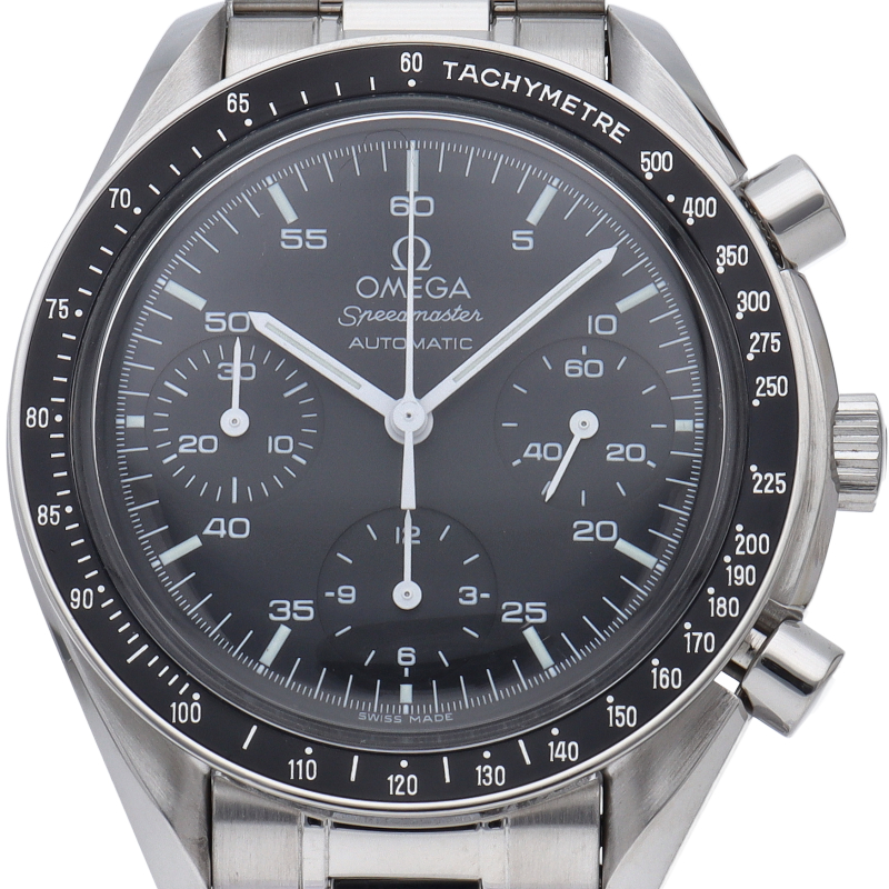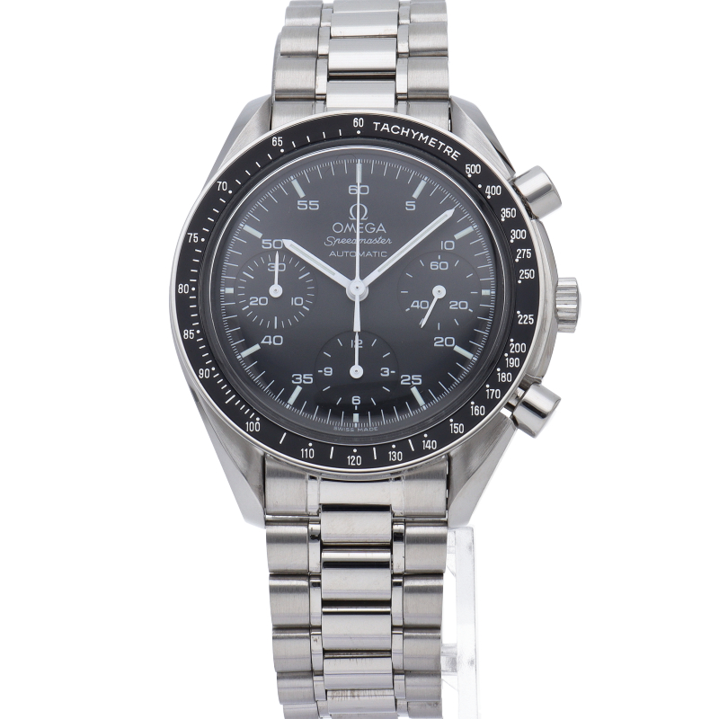 オメガを代表する人気シリーズ「スピードマスター」。プラ風防を使用したレトロな雰囲気かつシンプルにまとまったデザインがスタイルを選ばずにご使用いただけます。