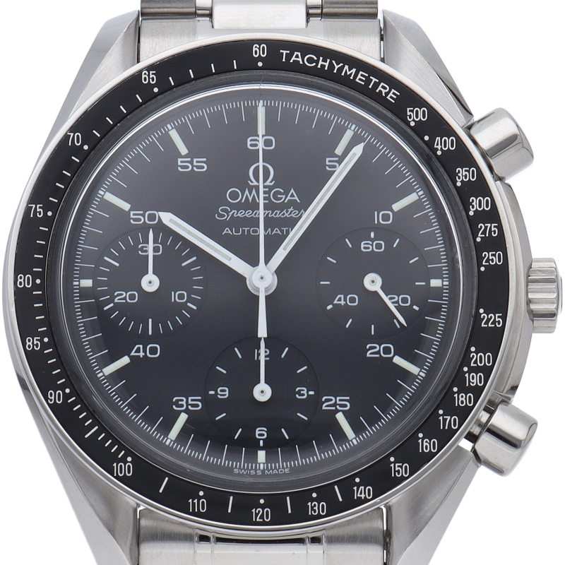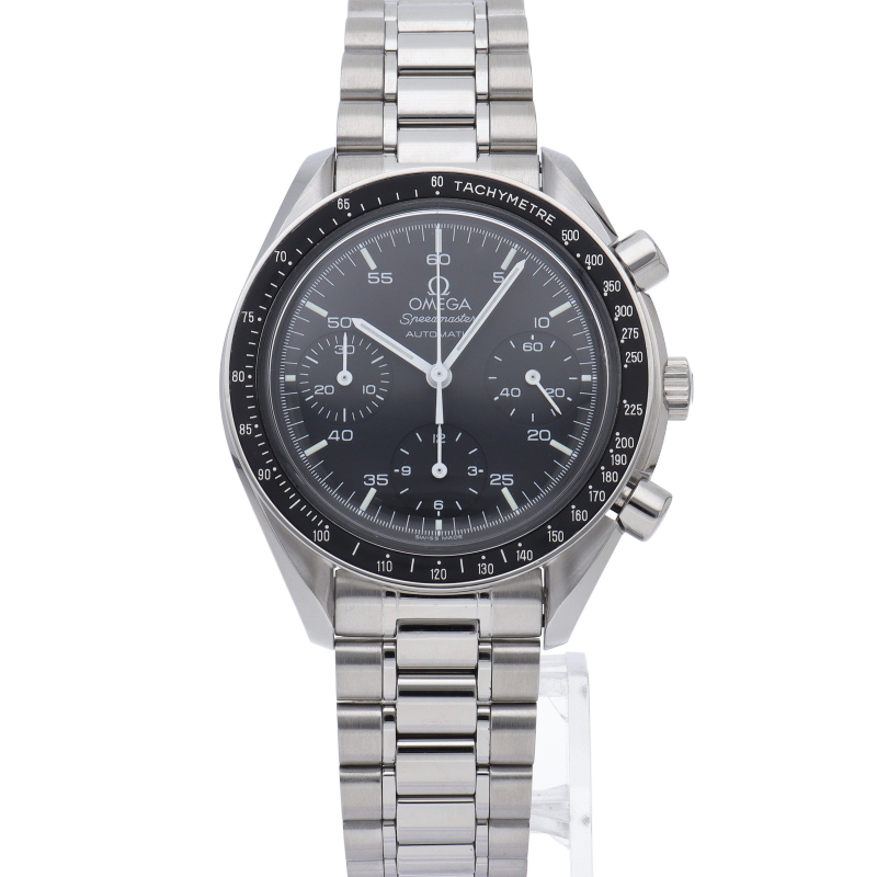 オメガを代表する人気シリーズ「スピードマスター」。プラ風防を使用したレトロな雰囲気かつシンプルにまとまったデザインがスタイルを選ばずにご使用いただけます。