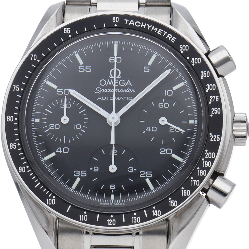 オメガを代表する人気シリーズ「スピードマスター」。プラ風防を使用したレトロな雰囲気かつシンプルにまとまったデザインがスタイルを選ばずにご使用いただけます。