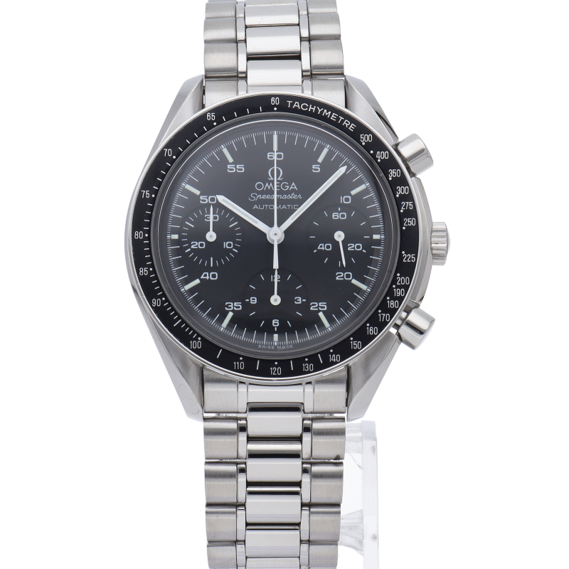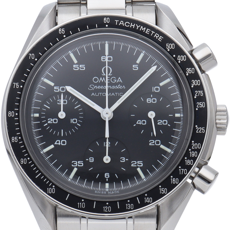 オメガを代表する人気シリーズ「スピードマスター」。プラ風防を使用したレトロな雰囲気かつシンプルにまとまったデザインがスタイルを選ばずにご使用いただけます。