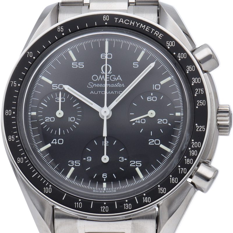 オメガを代表する人気シリーズ「スピードマスター」。プラ風防を使用したレトロな雰囲気かつシンプルにまとまったデザインがスタイルを選ばずにご使用いただけます。