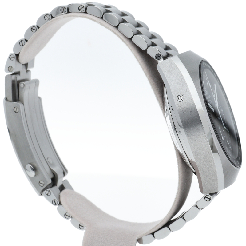 9時位置にスモールセコンド、6時位置に12時間積算計、3時位置に30分積算計があり、中央に時針、分針、クロノグラフ秒針が付属しています。サファイア・クリスタル ガラスの内側に設置されたタキメーターは、下のアルミニウム製リングに施されたスーパールミノヴァによってタキメータースケールが暗いところでも発光します。