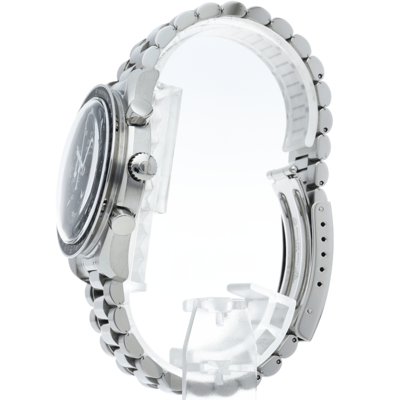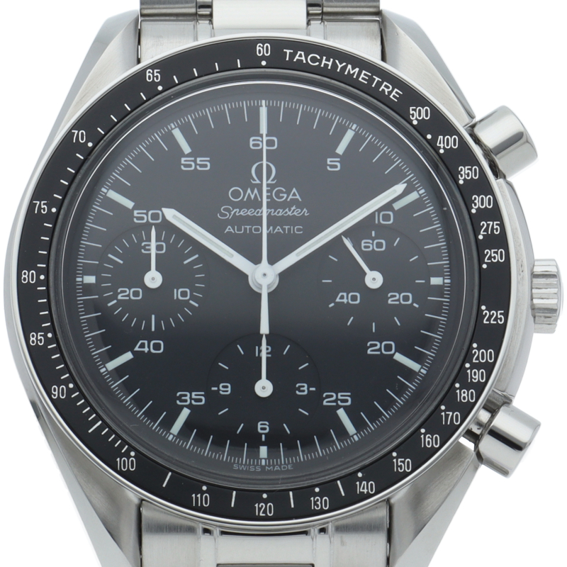 オメガを代表する人気シリーズ「スピードマスター」。プラ風防を使用したレトロな雰囲気かつシンプルにまとまったデザインがスタイルを選ばずにご使用いただけます。