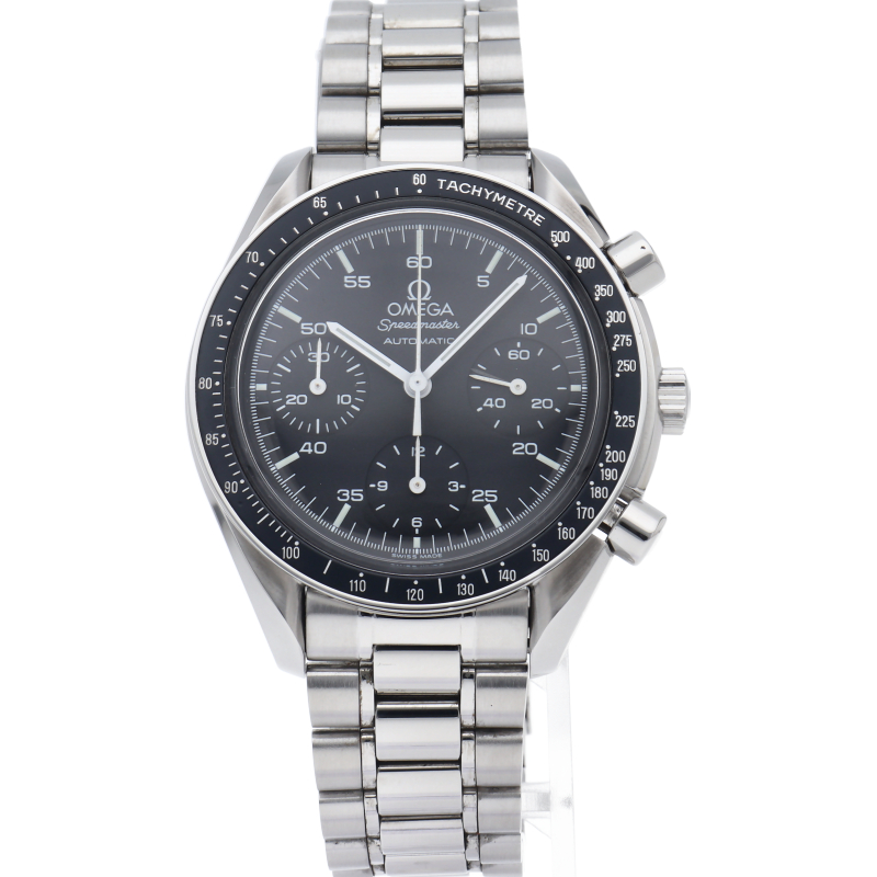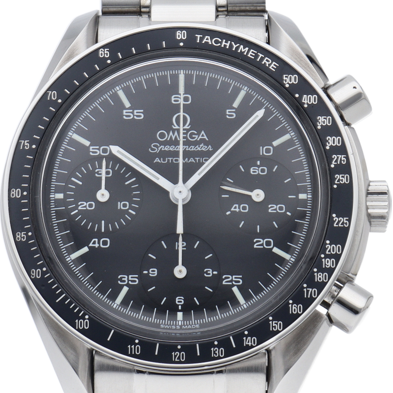 オメガを代表する人気シリーズ「スピードマスター」。プラ風防を使用したレトロな雰囲気かつシンプルにまとまったデザインがスタイルを選ばずにご使用いただけます。