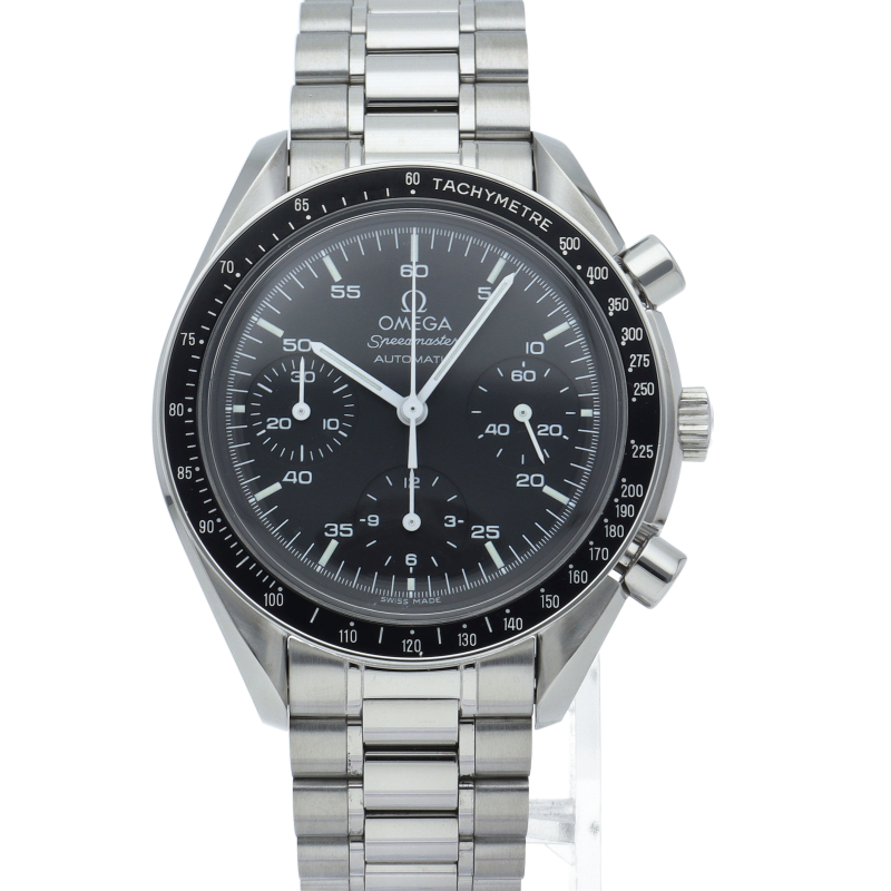 オメガを代表する人気シリーズ「スピードマスター」。プラ風防を使用したレトロな雰囲気かつシンプルにまとまったデザインがスタイルを選ばずにご使用いただけます。