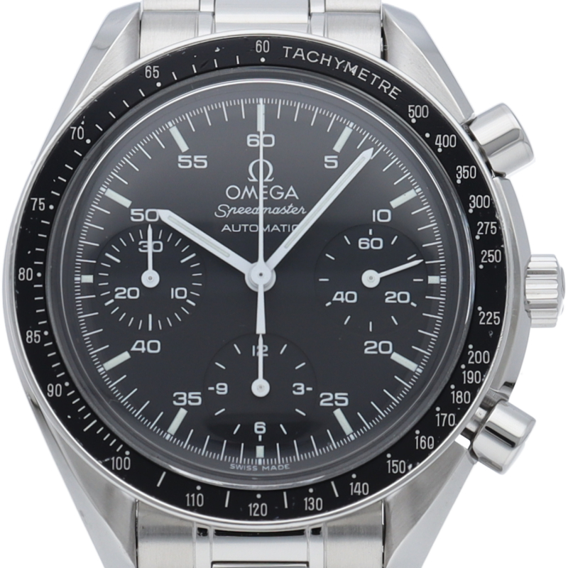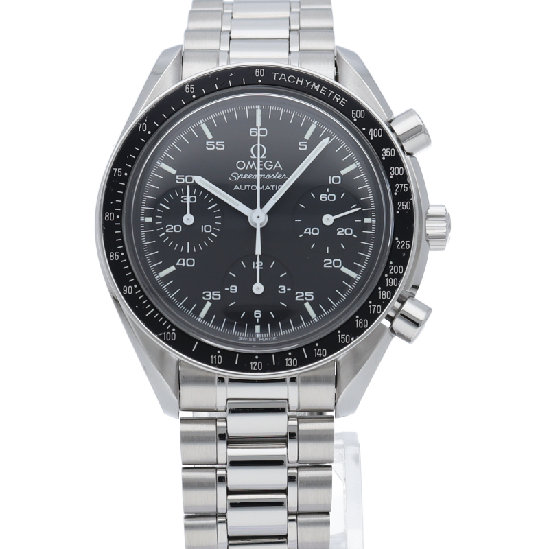 オメガを代表する人気シリーズ「スピードマスター」。プラ風防を使用したレトロな雰囲気かつシンプルにまとまったデザインがスタイルを選ばずにご使用いただけます。