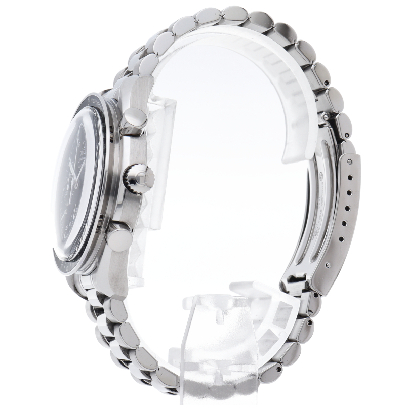オメガを代表する人気シリーズ「スピードマスター」。プラ風防を使用したレトロな雰囲気かつシンプルにまとまったデザインがスタイルを選ばずにご使用いただけます。