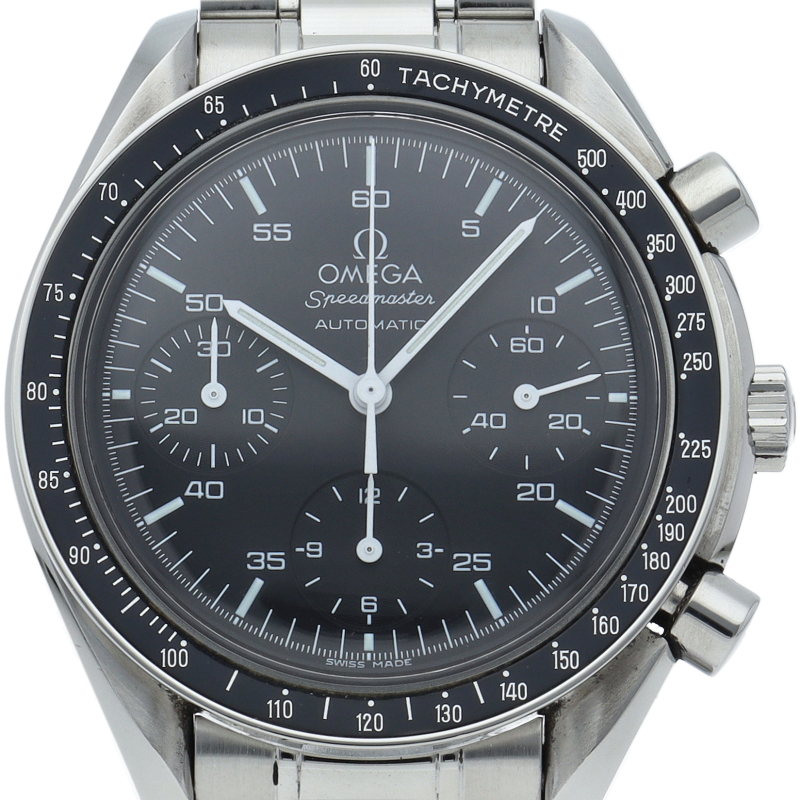 オメガを代表する人気シリーズ「スピードマスター」。プラ風防を使用したレトロな雰囲気かつシンプルにまとまったデザインがスタイルを選ばずにご使用いただけます。