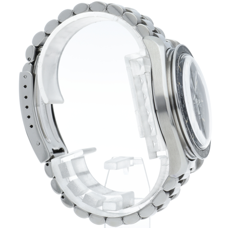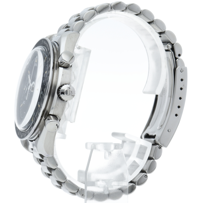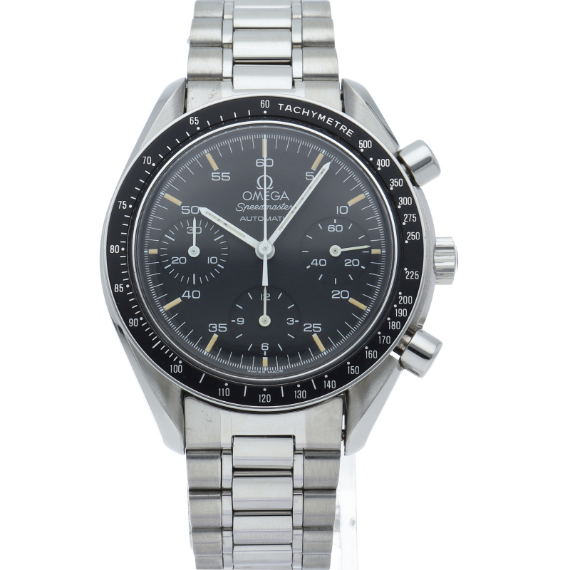オメガを代表する人気シリーズ「スピードマスター」。プラ風防を使用したレトロな雰囲気かつシンプルにまとまったデザインがスタイルを選ばずにご使用いただけます。
