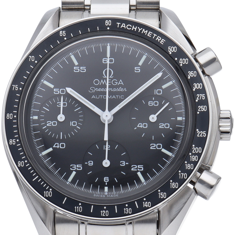 オメガを代表する人気シリーズ「スピードマスター」。プラ風防を使用したレトロな雰囲気かつシンプルにまとまったデザインがスタイルを選ばずにご使用いただけます。