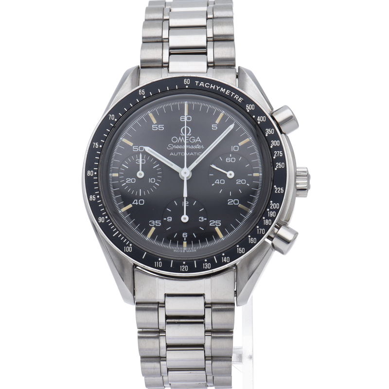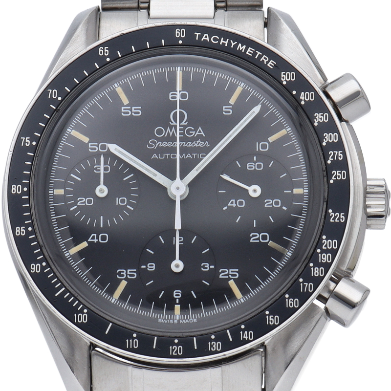 オメガを代表する人気シリーズ「スピードマスター」。プラ風防を使用したレトロな雰囲気かつシンプルにまとまったデザインがスタイルを選ばずにご使用いただけます。