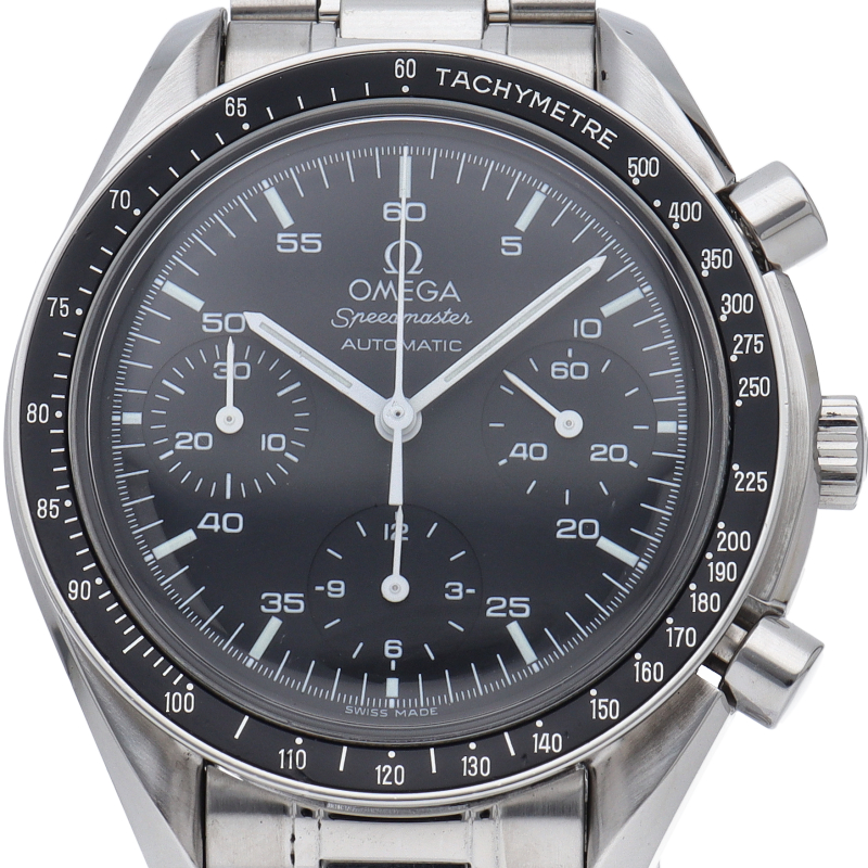 オメガを代表する人気シリーズ「スピードマスター」。プラ風防を使用したレトロな雰囲気かつシンプルにまとまったデザインがスタイルを選ばずにご使用いただけます。