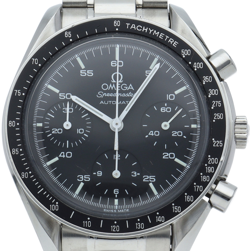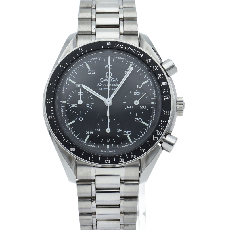 オメガを代表する人気シリーズ「スピードマスター」。プラ風防を使用したレトロな雰囲気かつシンプルにまとまったデザインがスタイルを選ばずにご使用いただけます。