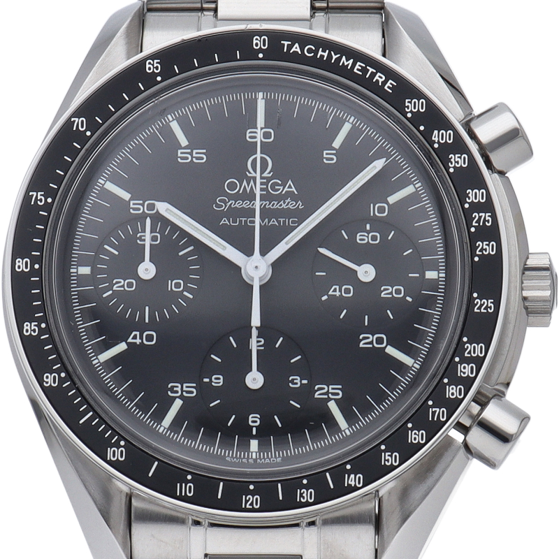 オメガを代表する人気シリーズ「スピードマスター」。プラ風防を使用したレトロな雰囲気かつシンプルにまとまったデザインがスタイルを選ばずにご使用いただけます。
