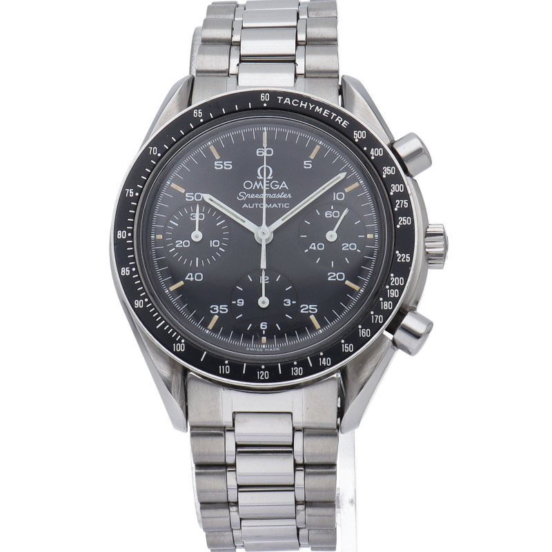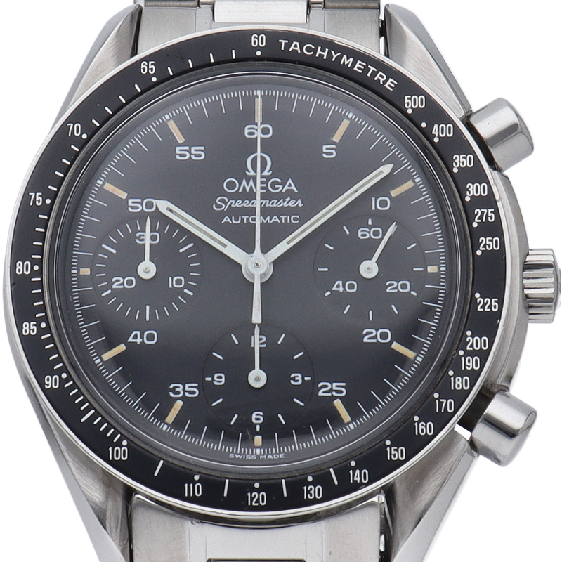 オメガを代表する人気シリーズ「スピードマスター」。プラ風防を使用したレトロな雰囲気かつシンプルにまとまったデザインがスタイルを選ばずにご使用いただけます。