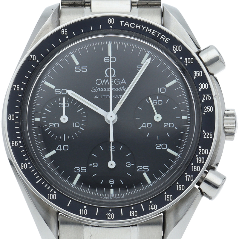 オメガを代表する人気シリーズ「スピードマスター」。プラ風防を使用したレトロな雰囲気かつシンプルにまとまったデザインがスタイルを選ばずにご使用いただけます。